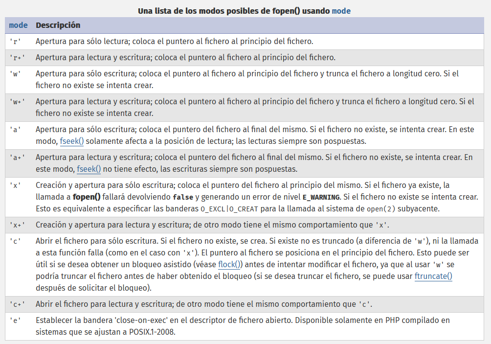 Referencia: https://www.php.net/manual/es/function.fopen.php
