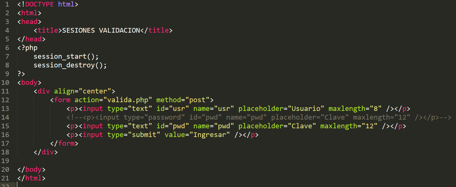 Codigo PHP de la clase index.php