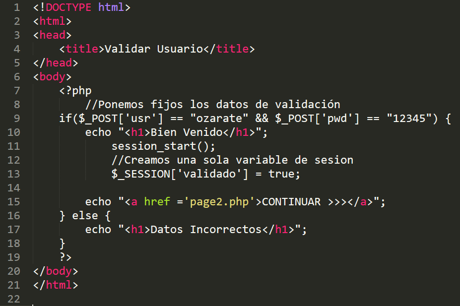 Codigo PHP de la clase page2.php