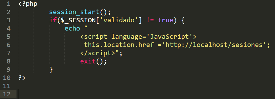 Codigo PHP de la clase validador.php que valida la sesión de cada sección del sitio
