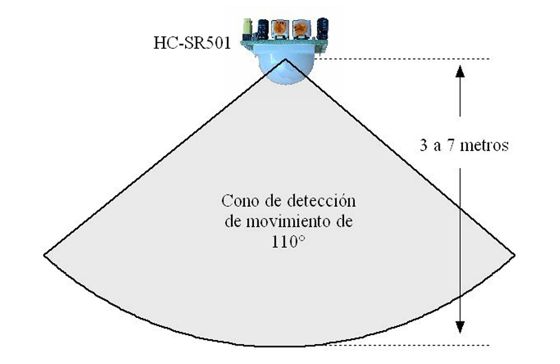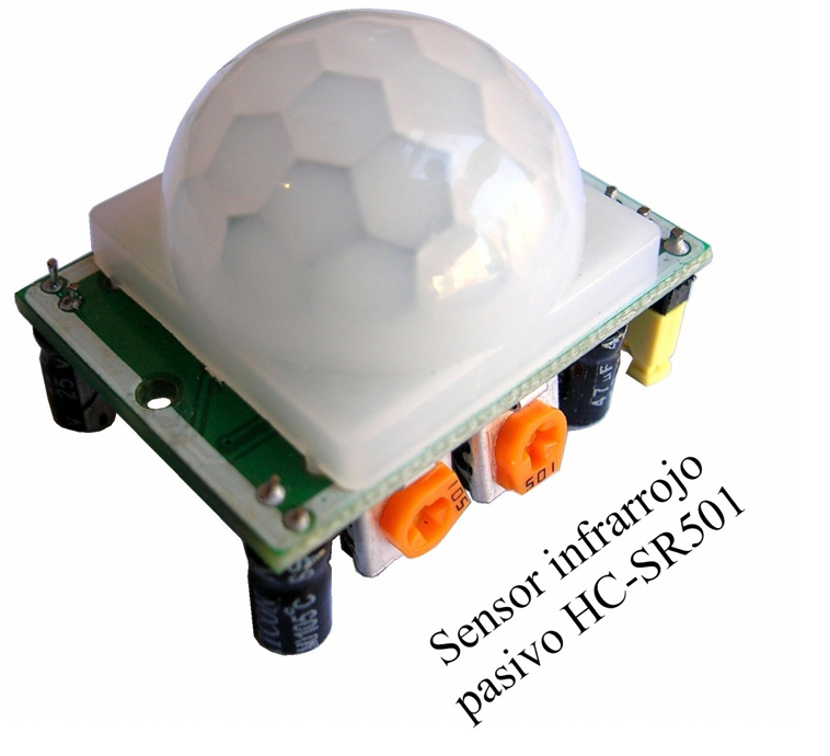 El sensor PIR infrarrojo: En los sensores de movimiento, el sensor PIR consta en realidad de 2 elementos detectores separados, siendo la señal diferencial entre ambos la que permite activar la alarma de movimiento. En el caso del HC-SR501, la señal generada por el sensor ingresa al circuito integrado BISS0001, el cual contiene amplificadores operacionales e interfaces electrónicas adicionales.