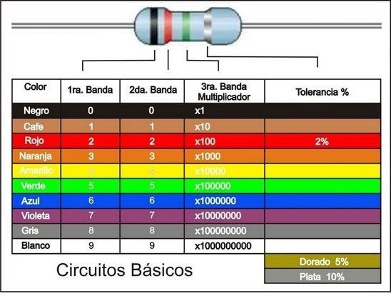 Resistencia con colores: Rojo - Rojo - Marrón - Dorado