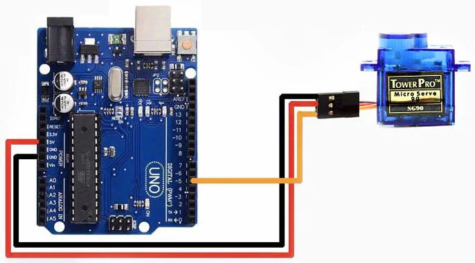 A diferencia de un motor DC normal, que solo gira cuando le das corriente, el servomotor se posiciona en un ángulo determinado de acuerdo a una señal que recibe de Arduino.