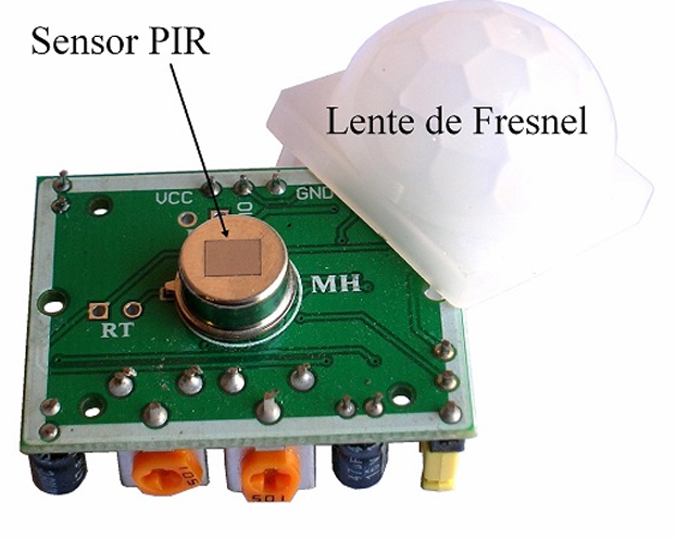 El lente de Fresnel: El lente de Fresnel es un encapsulado semiesférico hecho de polietileno de alta densidad cuyo objetivo es permitir el paso de la radiación infrarroja en el rango de los 8 y 14 micrones. El lente detecta radiación en un ángulo con apertura de 110° y, adicionalmente, concentra la energía en la superficie de detección del sensor PIR, permitiendo una mayor sensibilidad del dispositivo.