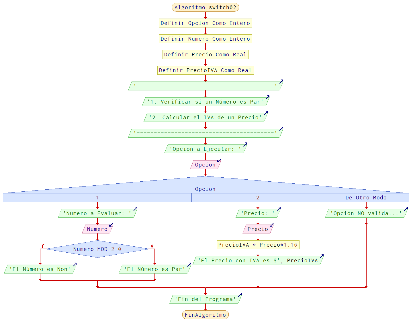 La estructura de control switch-case evalúa el valor de una variable para definir el flujo del programa.