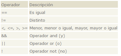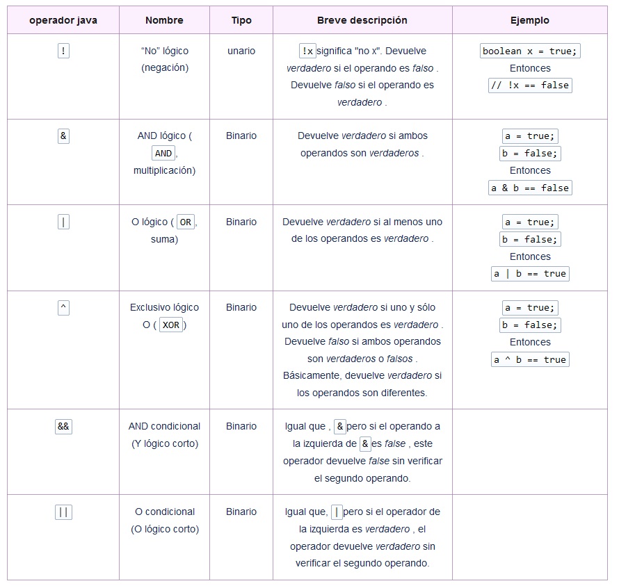 Estos operadores realizan operaciones booleanas y su resultado siempre es o falso o verdad