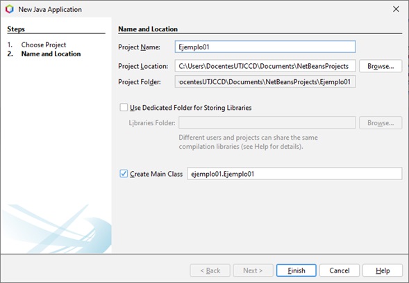 Nombramos el Proyecto, que será el mismo nombre del archivo en .java