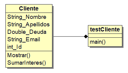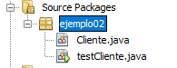 Código JAVA de la clase testCliente contenido en el archivo testCliente.java que instancia la clase Cliente