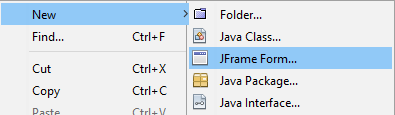 Para crear una interfaz visual seleccionamos la creación de una clase FrameForm.