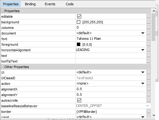Cuando arrastras y colocas componentes en la ventana, se pueden modificar sus propiedades en la sección de propiedades de la parte derecha.