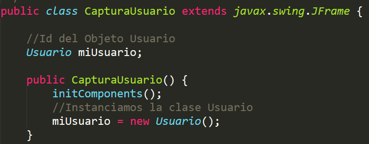 Para agregar o instanciar otras clases u objetos de otra clase se deberá de realizar en dos pasos, primero la creación de la variable de la clase y en el constructor de la ventana se instancia el objeto.